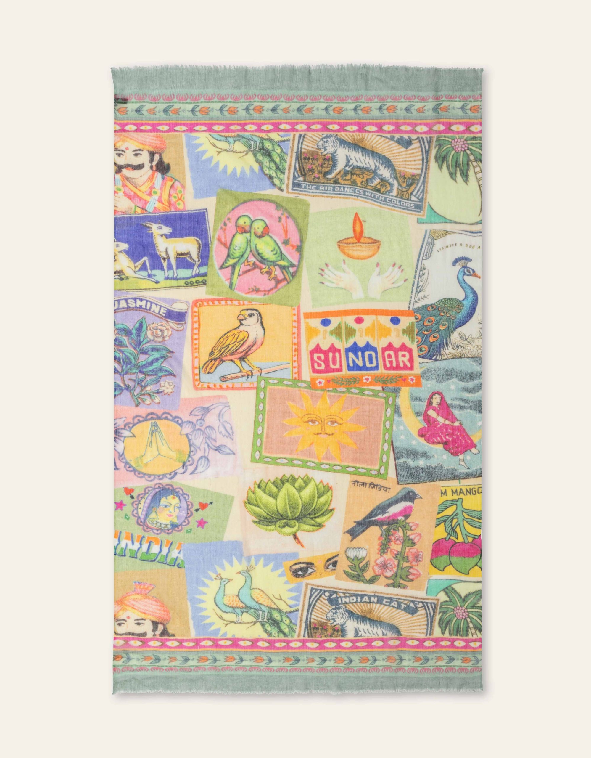 De print geïnspireerd op de kleurrijke Matchboxes uit India. In India worden zelfs de kleinste details versierd, zoals luciferdoosjes – vol kleur, patronen en verhalen. Die rijke, speelse decoratie zie je terug in deze unieke print.