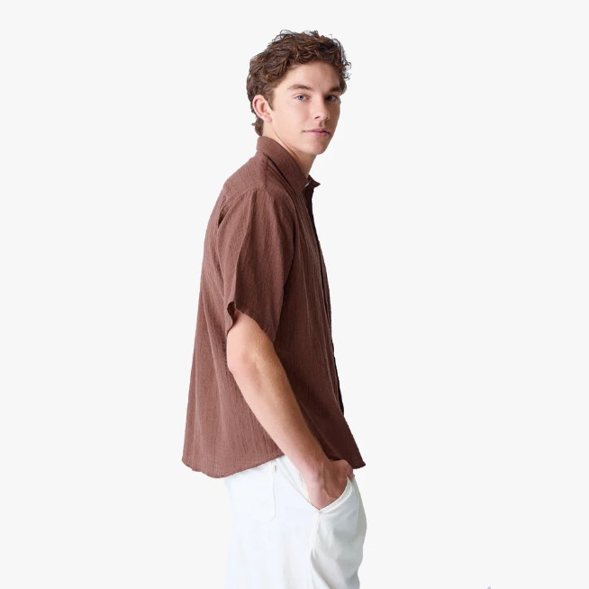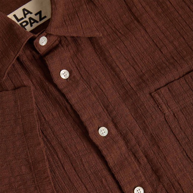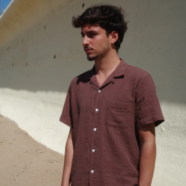 Het Roque-shirt is ontworpen voor optimale bewegingsvrijheid en een moeiteloze stijl. Het heeft een frisse, losse pasvorm die comfortabel maar toch gestructureerd is. De stof heeft een interessante structuur en een zeer fijn geweven net dat ademend aanvoelt. De Aztec Brown-tint doet denken aan zonovergoten aarde en kustkliffen, wat dit zomerse item extra diepte geeft.